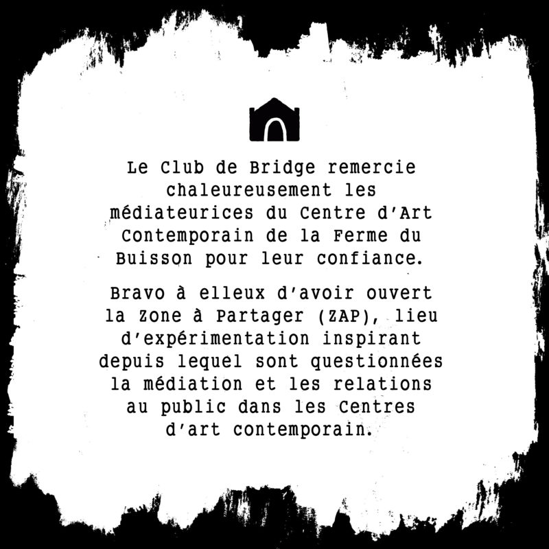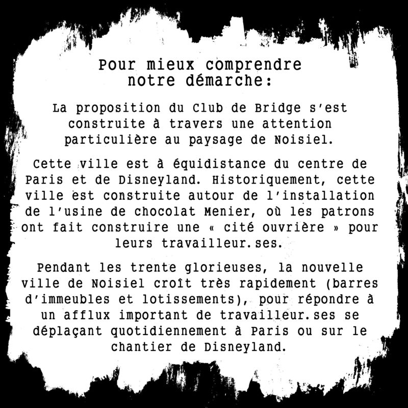 Cartographie de la Folie est un projet porté par le Club de Bridge durant l’année 2023. Il a pour vocation d’étudier un paysage d’un kilomètre carré à la sortie Nord de Poitiers, en établissant une pratique artistique in situ, dans une démarche participative et transdisciplinaire. De janvier à juin 2023, 8 workshops sont organisés en partenariat avec 8 jeunes chercheurs.es, artistes, architectes et designers européen.nes.