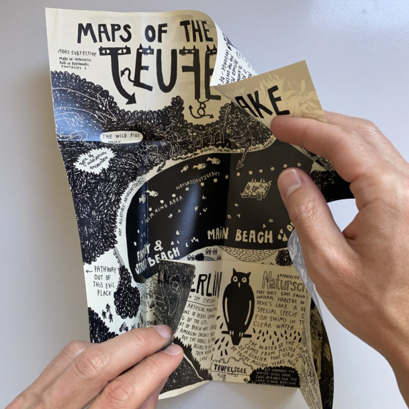 Le fanzine se déplie en une grande carte du lac, au format A3.