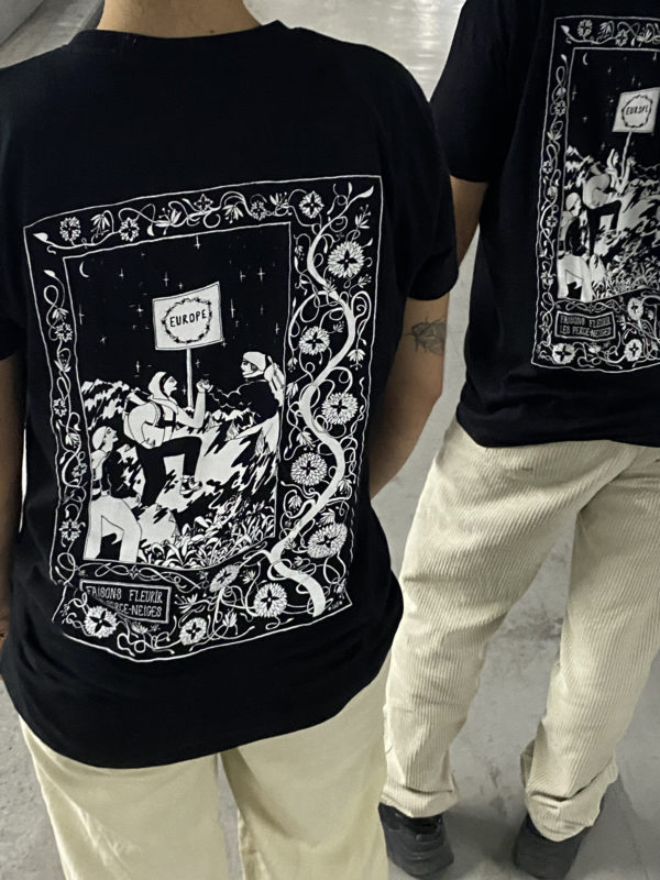 Les T-shirts sont en coton bio, et sont sérigraphiés par Rébecca et Pauline de l’atelier Emulsion, à côté de Poitiers.
